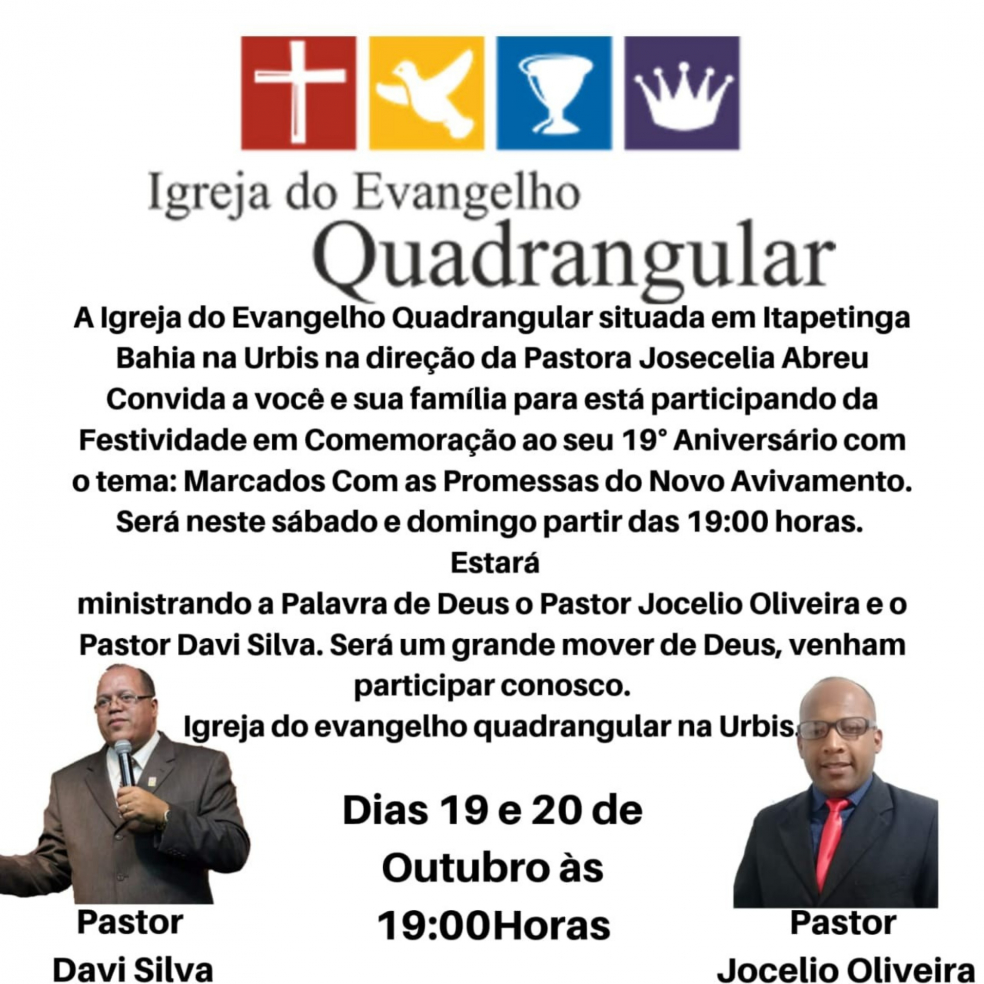 19° Aniversário da Igreja do Evangelho Quadrangular da Urbis.